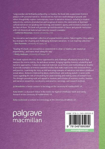 Preface. Telling lives in feminist narrative inquiry; Liz Stanley.- Chapter 1. Introduction: Doing feminist narrative research; Jo Woodiwiss, Kate Smith and Kelly Lockwood.- Part I. Why feminist narrative research?.- Chapter 2. Challenges for feminist research - contested stories, dominant narratives and narrative frameworks; Jo Woodiwiss.- Chapter 3. Doing narrative research? Thinking through the narrative process; Tina Miller.- Chapter 4. The Listening Guide feminist method of narrative analysis: Towards a posthumanist performative (re)configuration; Natasha Mauthner.- Part II. Situating feminist narrative.- Chapter 5. Young Mothers' Experiences of Relationship Abuse: Public Narratives, Personal Stories; Julia Langley.- Chapter 6. Listening to mum: narratives of mothers in prison; Kelly Lockwood.- Chapter 7. It's My Party, I'll Cry If I Want To: Interpreting Narratives of Childhood Sexual Abuse; Adele Jones and Hazel Da Breo.- Chapter 8. Women, asylum and resistance: A feminist narrative approach to making sense of stories; Kate Smith.- Chapter 9. Conclusion; Kelly Lockwood, Kate Smith and Jo Woodiwiss.