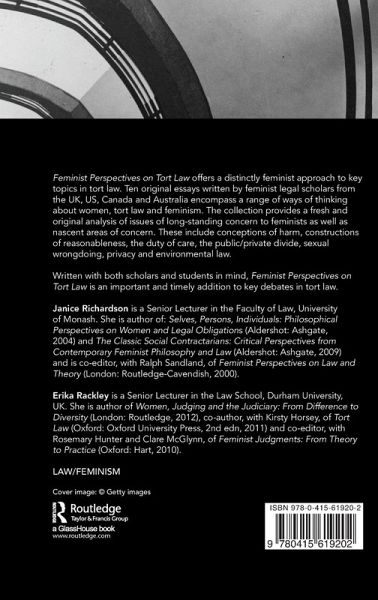 Feminist Perspectives on Tort brings together acknowledged experts in these two areas to pursue a distinctly feminist approach to the major areas of tort law.
