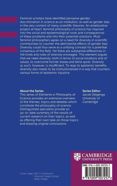"Feminist scholars have identified pervasive gender discrimination in science as an institution, as well as gender bias in the very content of many scientific theories. An ameliorative project at heart, feminist philosophy of science has inquired into the social and epistemological roots and consequences of these problems and into their potential solutions. Most feminist philosophers agree on a need for diversity in scientific communities to counter the detrimental effects of gender bias. Diversity could thus serve as a unifying concept for a potential consensus of the field. Yet there are substantial differences in the kinds and roles of diversity envisaged. This element argues that we need diversity, both in terms of social locations and of values, to overcome former biases and blind spots. Diversity as such, however, is insufficient. To reap its epistemic benefits, diversity also needs to be institutionalised in a way that counters various forms of epistemic injustice"--