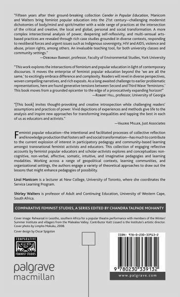 "Like its predecessor, Gender in Popular Education, this book makes visible 'the innovative, challenging creative work undertaken by feminist popular educators, sometimes under the most trying conditions'. Sixteen years on, we have a collection of chapters that are exemplary stories of praxis, weaving together feminist and pedagogic theory and practice for action, illustrating how feminist popular education is 'a means to both exercise and contest power' . . . The 21 authors all deal with the tensions and contradictions, revelations and crucial insights that arise in/out of doing this work and they describe and critically analyse their craft, giving us valuable insight into the workings of feminist popular education." - International Journal of Lifelong Education