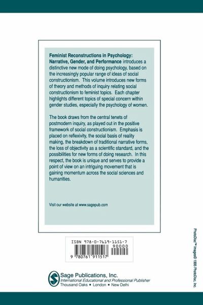 Feminist Reconstructions in Psychology introduces a distinctive new mode in doing psychology. This psychology is based on an increasingly popular range of ideas called social constructionism. Within the book, new forms of theory and methods of inquiry relating social constructionism to feminist topics are introduced. Each chapter highlights different topics of special concern within gender studies, especially the psychology of women. The book draws from the central tenets of postmodern inquiry, as played out in the positive framework of social constructionism. Emphasized are reflexivity, the social basis of reality making, the breakdown of traditional narrative forms, the loss of objectivity as a scientific standard, and the possibilities for new forms of doing research. In this respect, the book is unique and serves to provide a point of view on an intriguing movement that is gaining momentum across the social sciences and humanities.