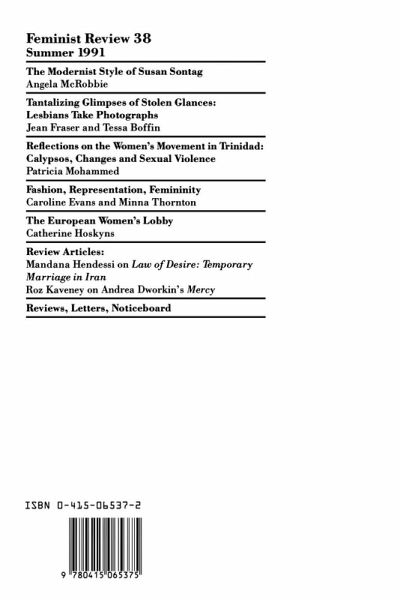 This issue of Feminist Review concentrates on cultural studies: the modernist style of Susan Sontag, fashion and representation, and a very witty look at lesbian photographs.
