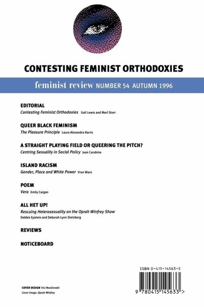 Queer Black Feminism Laura Alexandra Harris A Straight Playing Field or Queering the Pitch?: Centring Sexuality in Social Policy Jean Carabine Island Racism: Gender, Place and White Power Vron Ware Vera (Poem) Emily Cargan^ 'I Teach therefore I am': Lesbian Studies in the Liberal Academy Sally R. Munt All Het Up! Rescuing Heterosexuality on The Oprah Winfrey Show Debbie Epstein & Deborah Lynn Steinberg