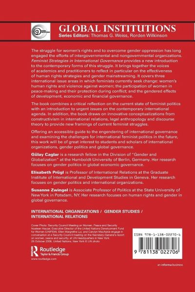 The contributors to this volume provide a survey of the existing gender machineries on the international level, explore the way in which feminist movements have approached international organizations and the way IOs have responded, and examine the laws and norms that have been produced and their effects in local contexts globally.