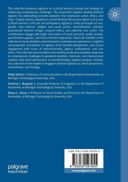 This collection advances vigilance as a critical feminist concept and strategy for addressing contemporary challenges. The assembled chapters develop feminist vigilance by elaborating concrete examples that emphasize action, ethics, and hope. Chapter authors expand on current feminist discussions about such issues as Black women's self-care and anticipatory vigilance; media portrayals of race, gender, and violence; religion and social justice; technofeminist activism; postcolonial feminist critique; research ethics; and collective civic action. The contributions engage with larger discussions of social precarity, public anxiety, post-feminist appeals, and future feminist trajectories. Particular benefits of the collection include relatable content based in contemporary experiences, insightful and pragmatic conceptions of vigilance from feminist perspectives, and critical engagement with issues of intersectionality, agency, embodiment, and care ethics. The collection aims to addressthe need for productive academic responses to contemporary challenges to gendered identities, feminism, and intersectional relations that avoid abstractions or overwhelmingly negative analyses. Instead, this collection invites readers to engage in feminist vigilance as a fresh perspective, commitment, and strategy.