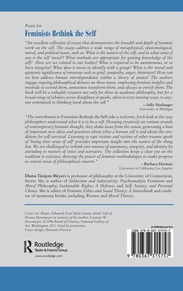 The self is a pivotal philosophical topic. This collection of papers by feminists addresses issues including sexual violence and the self, the social self and autonomy, the narrative self and integrity, self-ownership and the body, and forgetting yourself and your race.