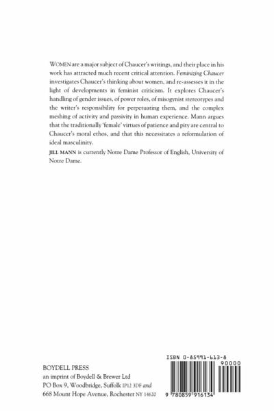 An investigation of Chaucer's thinking about women, assessed in the light of developments in feminist criticism. Women are a major subject of Chaucer's writings, and their place in his work has attracted much recent critical attention. Feminizing Chaucer investigates Chaucer's thinking about women, and re-assesses it in the light of developments in feminist criticism. It explores Chaucer's handling of gender issues, of power roles, of misogynist stereotypes and the writer's responsibility for perpetuating them, and the complex meshing of activity and passivityin human experience. Mann argues that the traditionally 'female' virtues of patience and pity are central to Chaucer's moral ethos, and that this necessitates a reformulation of ideal masculinity. First published [as Geoffrey Chaucer] in the series 'Feminist Readings', this new edition includes a new chapter, 'Wife-Swapping in Medieval Literature'. The references and bibliography have been updated, and a new preface surveys publications in the field over the last decade. JILL MANN is currently Notre Dame Professor of English, University of Notre Dame.