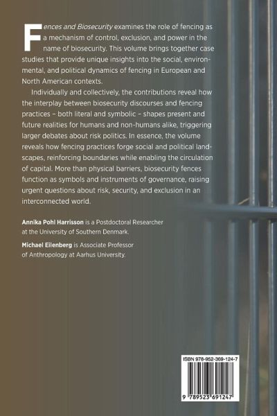Fences and Biosecurity explores the role of fencing as a mechanism of control, exclusion, and power in the name of biosecurity. While biosecurity is broadly understood as the set of measures taken to prevent the introduction and spread of harmful organisms - thereby protecting humans, animals, and plants - this volume critically examines how fencing has become a key tool in these efforts. Through an interdisciplinary lens, the chapters reveal the ways in which fences, both physical and symbolic, shape social, political, and ecological landscapes. This volume brings together scholars from different regions to investigate the ways in which biosecurity fencing is deployed across different contexts in Europe and North America. As fencing practices increase in scope and intensity, it becomes imperative to assess their effects - both intended and unintended - on human and non-human life. More than passive structures, fences actively participate in the governance of space, reinforcing borders, and regulating mobility. They embody biosecurity concerns, turning abstract discourses into tangible barriers that impact everyday life. Yet, fences are not merely practical tools; they also serve as powerful symbols of fear, control, and exclusion. While they may provide protection, they also create division, evoking a range of intellectual and emotional reactions and raising questions about their long-term implications. Fences and Biosecurity highlights how fencing, as a manifestation of biosecurity anxieties, is not only about managing biological threats but also about organizing the world into hierarchies of value. By delineating spatial boundaries, fences impose distinctions between what is considered safe and what is framed as dangerous or invasive. This separation of differently valued species and biological matter is not neutral; rather, it is deeply entangled with political imaginaries, economic interests, and global trade dynamics. Fences facilitate the circulation of capital while simultaneously restricting the movement of certain species and populations, making them instruments of governance rather than mere physical barriers. While fences physically separate spaces, they also reshape cultural understandings of risk, security, and belonging. By shifting the focus from biosecurity as an abstract policy concern to fencing as a material and discursive practice, this volume reveals the ways in which security measures are enacted on the ground. Annika Pohl Harrisson is a postdoctoral researcher at the University of Southern Denmark. Michael Eilenberg is an associate professor of anthropology at Aarhus University.