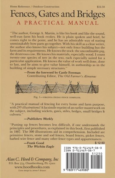 “The author, George A. Martin, knows his subject, not only fence building but the farm and its requirements. He knows the stock: the unconfinable pig, the dexterous cow. He knows his materials, especially wood. I count twenty-one species of tree in the text, each especially suited for a particular application. He knows the value of work well done, done to last, and he aims to give value himself, in authorship as in the building of simple necessary structures.” from the Foreword by Castle Freeman
