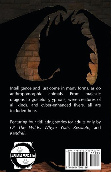 Intelligence and lust come in many forms, as do anthropomorphic animals. From majestic dragons to graceful gryphons, were-creatures of all kinds, and cyber-enhanced flyers, all are included here. Featuring four titillating stories for adults only by Of The Wilds, Whyte Yoté, Resolute, and Kandrel. Table of Contents: Snowbound by Of The Wilds Supernatural Delight by Whyte Yoté Nothing Feathered, Nothing Gained by Resolute Adrenaline High by Kandrel Edited by Rechan, Cover art by Rukis