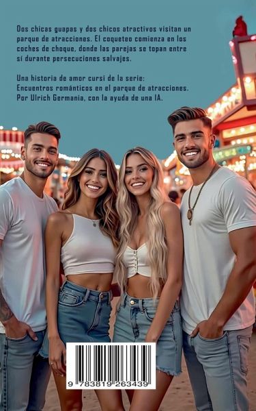 Dos chicas guapas y dos chicos atractivos visitan un parque de atracciones. El coqueteo comienza en los coches de choque, donde las parejas se topan entre sí durante persecuciones salvajes. Una historia de amor cursi de la serie: Encuentros románticos en el parque de atracciones. Por Ulrich Germania, con la ayuda de una IA.