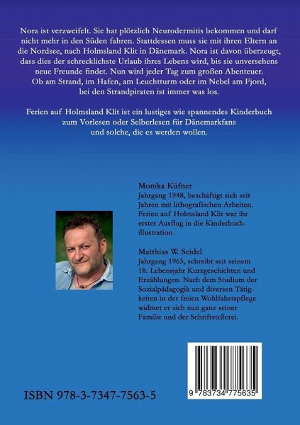 Nora ist verzweifelt. Sie hat plötzlich Neurodermitis bekommen und darf nicht mehr in den Süden fahren. Stattdessen muss sie mit ihren Eltern an die Nordsee, nach Holmsland Klit in Dänemark. Nora ist davon überzeugt, dass dies der schrecklichste Urlaub ihres Lebens wird, bis sie unversehens neue Freunde findet. Nun wird jeder Tag zum großen Abenteuer. Ob am Strand, im Hafen, am Leuchtturm oder im Nebel am Fjord, bei den Strandpiraten ist immer was los. Ferien auf Holmsland Klit ist ein lustiges wie spannendes Kinderbuch zum Vorlesen oder Selberlesen für Dänemarkfans und solche, die es werden wollen.