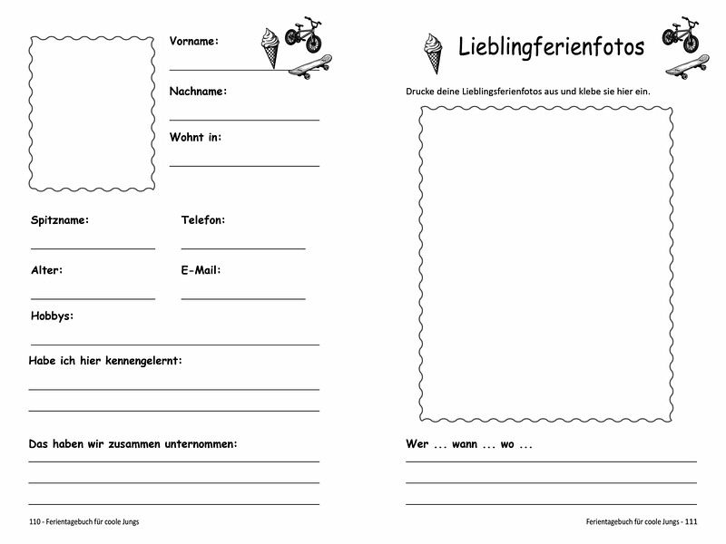 Ferientagebuch für coole Jungs - Halte deine Ferienabenteuer fest!Dieses coole Ferientagebuch ist genau das Richtige für alle Jungs, die ihre Ferien unvergesslich machen wollen. Ob spannende Abenteuer im Urlaub, lustige Aktionen mit Freunden oder entspannte Tage zu Hause - hier kannst du alles aufschreiben, was du erlebst. Trag einfach den Wochentag und das Datum ein und du kannst dich später perfekt an deine schönsten Ferientage erinnern.Damit in den Ferien garantiert keine Langeweile aufkommt, wartet eine coole Bucket-List auf dich. Plane, was du unbedingt erleben willst, und hake ab, was du schon geschafft hast. Außerdem findest du viele Tipps und Ideen für spannende Ferienaktivitäten.Und das Beste: In deinem ganz persönlichen Ferien-Freundebuch können sich deine Freunde eintragen. Auf extra Seiten kannst du außerdem deine Lieblingsfotos einkleben oder Bilder malen und deine Ferienerinnerungen komplett machen.Ferienzeit ist Abenteuerzeit - schnapp dir dein Ferientagebuch und starte durch!