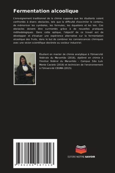 L'enseignement traditionnel de la chimie suppose que les étudiants soient confrontés à divers obstacles, tels que la difficulté d'assimiler le contenu, de mémoriser les symboles, les formules, les équations et les lois. Ces obstacles doivent être surmontés grâce à de nouvelles pratiques méthodologiques. Dans cette optique, l'objectif de ce travail est de développer et d'évaluer une expérience alternative sur la fermentation alcoolique des fruits, dans le but de combiner les connaissances chimiques avec une vision scientifique destinée au secteur industriel.