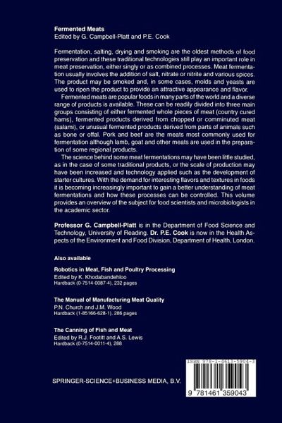 Preservation by fermentation is one of the oldest food technologies, and yet it continues to play an important role in meat preservation in many parts of the world. These processes can be relatively simple, with minimal microbial involvement, or more complex, involving defined ingredients and starter cultures with controlled environmental conditions. Most meat fermentations rely on the use of salt as an ingredient, sometimes with the addition of nitrate, nitrite and spices. In some cases the meat may be smoked and, as with some cheese fermentations, fermented meats may be ripened by moulds and yeasts. The preservation of meats by fermentation depends on the interaction of a number of environmental and microbio logical factors including the pH, water activity, redox potential and the presence of preservatives and a competitive microftora. The subject of fermented meats is an important but relatively specialised area of microbiology and food technology. Few books have specifically addressed this subject and the topic has usually been dealt with in reviews and research papers with a significant proportion of these being published in languages other than English. As far as we are aware, this volume is the first to bring together a selection of key topics relating to the production of fermented meats and their chemical and microbiological properties. The book begins with a general chapter on the properties of meat.
