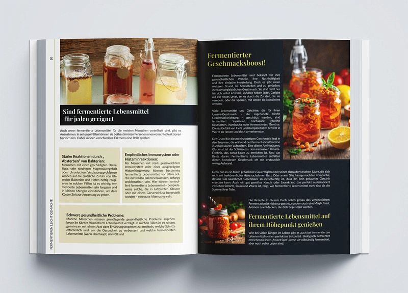 Stellt euch vor, ihr startet den Tag mit einem cremigen Heidelbeer-Kefir, der eure Darmflora jubeln lässt. Zum Lunch gibt's einen knackigen Kimchi-Salat, der jede Bowl-Bar alt aussehen lässt. Abends duftet eine luftig-leichte Sauerteig-Pizza mit spritziger, fermentierter Tomatensauce aus dem Ofen - und als Dessert perlt ein erfrischender Ingwer-Kombucha im Glas. Klingt exotisch? Ist mit diesem Buch kinderleicht!