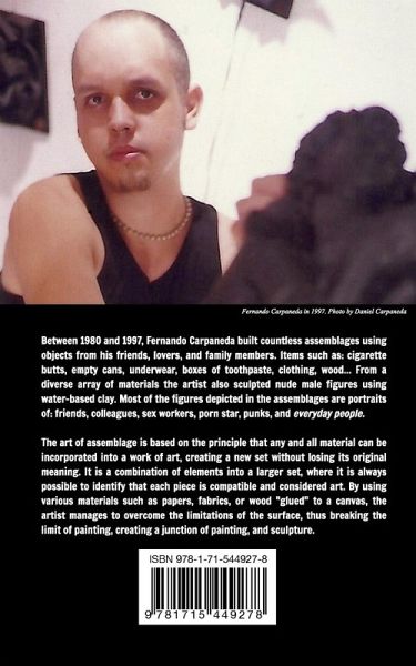 Between 1980 and 1997, Fernando Carpaneda built countless assemblages using objects from his friends, lovers, and family members. Items such as: cigarette butts, empty cans, underwear, boxes of toothpaste, clothing, wood. From a diverse array of materials the artist also sculpted nude male figures using water-based clay. Most of the figures depicted in the assemblages are portraits of: friends, colleagues, sex workers, porn star, punks, and everyday people. The art of assemblage is based on the principle that any and all material can be incorporated into a work of art, creating a new set without losing its original meaning. It is a combination of elements into a larger set, where it is always possible to identify that each piece is compatible and considered art. By using various materials such as papers, fabrics, or wood "glued" to a canvas, the artist manages to overcome the limitations of the surface, thus breaking the limit of painting, creating a junction of painting, and sculpture. His voracious engagement in the cause of diversity and punk culture led him to exhibit at Art Basel in Miami, the Tom of Finland Foundation in California, The Stax Museum of American Soul Music in Memphis and The Leslie Lohman Museum of Art in New York to name a few. His works are included in multiple art collections, galleries and museums, also appearing in publications as The Best of Punk Globe Magazine, alongside Debbie Harry, Jamie Oliver (UK SUBS), Sid Vicious, Earl Slick, John Lydon, The Adicts, Glen Matlock, Joe Dallesandro, Andy Warhol, Pauley Perrete also in Treasures Of Gay Art, a book by Leslie Lohman Museum of Art, featuring Andy Warhol, Robert Mapplethorpe, Keith Haring, Jean Cocteau and many others. In June 18, 2012, some of his works were selected and exhibited at Times Square in New York, during the opening of the exhibition Art Takes Times Square. The works were exhibited in 10m² LED panels covering 23 floors (Nasdaq screens, Thomson and Reuters, Clear Channel S