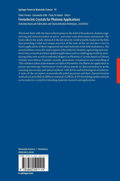 This book deals with the latest achievements in the field of ferroelectric domain engineering and characterization at micro- and nano-scale dimensions and periods. The book collects the results obtained in the last years by world scientific leaders in the field, thus providing a valid and unique overview of the state-of-the-art and also a view to future applications of those engineered and used materials in the field of photonics. The second edition covers the major aspects of ferroelectric domain engineering and combines basic research and latest updated applications such as challenging results by introducing either new as well as extended chapters on Photonics Crystals based on Lithium Niobate and Lithium Tantalate crystals; generation, visualization and controlling of THz radiation; latest achievements on Optical Parametric Oscillators for application in precise spectroscopy. Further more recent advancements in characterization by probe scanning microscopy and optical methods with device and technological orientation. A state-of-the-art report on periodically poled processes and their characterization methods are provided on different materials (LiNbO3, KTP) furnishing update research on ferroelectric crystal by extending materials research and applications.