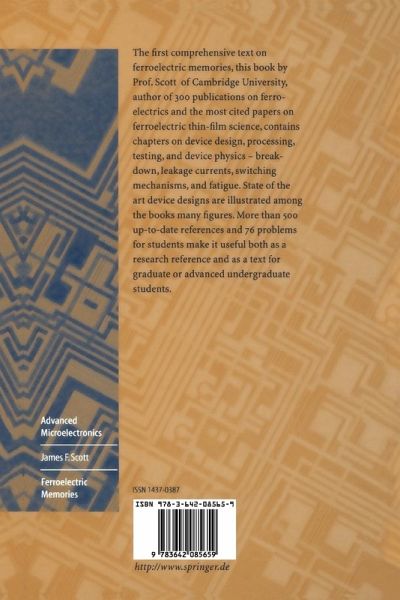 Ferroelectric memories have changed in 10 short years from academic curiosities of the university research labs to commercial devices in large-scale production. This is the first text on ferroelectric memories that is not just an edited collection of papers by different authors. Intended for applied physicists, electrical engineers, materials scientists and ceramists, it includes ferroelectric fundamentals, especially for thin films, circuit diagrams and processsing chapters, but emphazises device physics. Breakdown mechanisms, switching kinetics and leakage current mechanisms have lengthly chapters devoted to them. The book will be welcomed by research scientists in industry and government laboratories and in universities. It also contains 76 problems for students, making it particularly useful as a textbook for fourth-year undergraduate or first-year graduate students.
