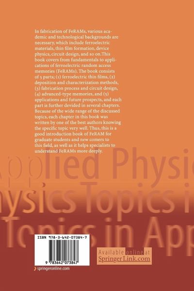 In fabrication of FeRAMs, various academic and technological backgrounds are necessary, which include ferroelectric materials, thin film formation, device physics, circuit design, and so on. This book covers from fundamentals to applications of ferroelectric random access memories (FeRAMs). The book consists of 5 parts: (1) ferroelectric thin films, (2) deposition and characterization methods, (3) fabrication process and circuit design, (4) advanced-type memories, and (5) applications and future prospects; each part is further divided into several chapters. Because of the wide range of topics discussed, each chapter in this book was written by one of the best authors knowing the specific topic very well. Thus, this is a good introductory book on FeRAM for graduate students and newcomers to this field; it also helps specialists to understand FeRAMs more deeply.