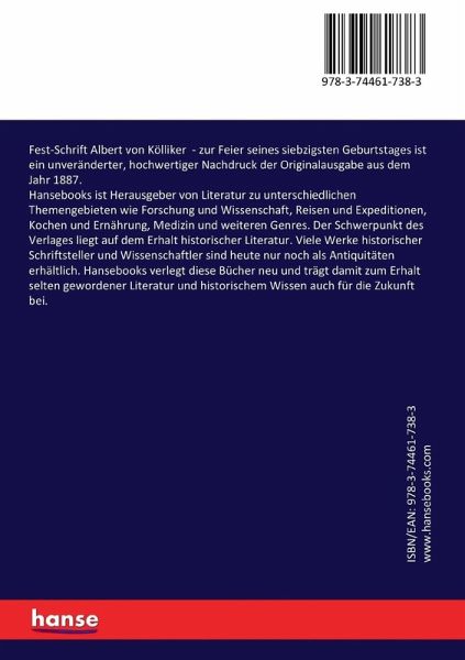 Fest-Schrift Albert von Kölliker - zur Feier seines siebzigsten Geburtstages ist ein unveränderter, hochwertiger Nachdruck der Originalausgabe aus dem Jahr 1887.