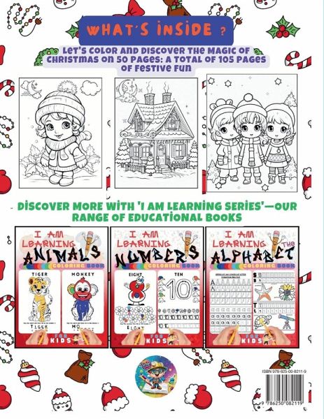 A Merry Christmas Coloring Book Dear Young Artist, Welcome to the joyous season of Christmas through the pages of your new coloring book! This special book is filled with the magic and wonder of the holiday season. You'll find jolly Santa Clauses, cheerful children playing in the snow, and cozy homes decorated for the festivities. Every page invites you to add a splash of color to the white winter canvas. As you turn each page, you'll be greeted with familiar Christmas scenes waiting for your unique touch. Whether it's Santa with his bag of toys or a snowy cottage that looks like it's straight out of a fairy tale, your colors will bring warmth and cheer to these lovely scenes. You have the power to illuminate the starry night skies, to dress the Christmas trees in glittering ornaments, and to give Santa's suit its classic red and white. There's a whole spectrum of colors for you to choose from-so let your imagination run wild! Grab your colored pencils, markers, or crayons, and get ready to embark on a festive journey. With every stroke and every hue you choose, you'll spread the Christmas spirit. This coloring book is your canvas to express the joy and beauty of Christmas. May your holidays be as bright and colorful as the masterpieces you create. Merry Coloring and a Happy New Year! Don't wait for the snow to start falling-pick up your copy today and start coloring your way into the Christmas spirit!