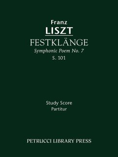 The seventh in his visionary series of thirteen tone poems for orchestra, Liszt's Festklänge was originally intended as a wedding march for his own wedding to Princess Wittgenstein during a brief period in 1853 when it seemed there would be no obstacle to the nuptials from the Vatican and even includes a 'polonaise' section alluding to the Polish origins of the Princess. After the Vatican indefinitely postponed the anticipated permission, the work was first performed as a musical introduction to a Schiller play given on 9 September 1854 with the composer conducting the Weimar Hofkapelle. This new study score is a digitally-restored reissue of the score edited by Otto Taubmann in the fourth volume of the Liszt-Stiftung edition, published in 1909. In contrast so many of the on-demand scores now available this one comes with all the pages with each image thoroughly checked to make sure it is readable, then beautifully printed on quality stock with an attractive glossy cover. Also included is an informative introduction by Liszt scholar Soren Afshar (Funper), a major contributor to the vast collection of Liszt pieces on IMSLP. The matching full score and orchestra parts are also available from Serenissima Music.