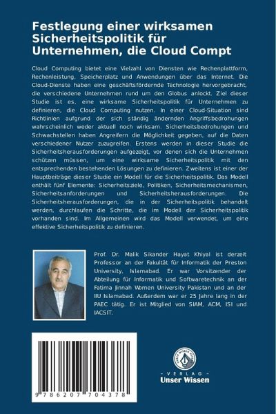 Cloud Computing bietet eine Vielzahl von Diensten wie Rechenplattform, Rechenleistung, Speicherplatz und Anwendungen über das Internet. Die Cloud-Dienste haben eine geschäftsfördernde Technologie hervorgebracht, die verschiedene Unternehmen rund um den Globus anlockt. Ziel dieser Studie ist es, eine wirksame Sicherheitspolitik für Unternehmen zu definieren, die Cloud Computing nutzen. In einer Cloud-Situation sind Richtlinien aufgrund der sich ständig ändernden Angriffsbedrohungen wahrscheinlich weder aktuell noch wirksam. Sicherheitsbedrohungen und Schwachstellen haben Angreifern die Möglichkeit gegeben, auf die Daten verschiedener Nutzer zuzugreifen. Erstens werden in dieser Studie die Sicherheitsherausforderungen aufgezeigt, vor denen sich die Unternehmen schützen müssen, um eine wirksame Sicherheitspolitik mit den entsprechenden bestehenden Lösungen zu definieren. Zweitens ist einer der Hauptbeiträge dieser Studie ein Modell für die Sicherheitspolitik. Das Modell enthält fünfElemente: Sicherheitsziele, Politiken, Sicherheitsmechanismen, Sicherheitsanforderungen und Sicherheitsherausforderungen. Die Sicherheitsherausforderungen, die in der Sicherheitspolitik behandelt werden, durchlaufen die Schritte, die im Modell der Sicherheitspolitik vorhanden sind. Im Allgemeinen wird das Modell verwendet, um eine effektive Sicherheitspolitik zu definieren.
