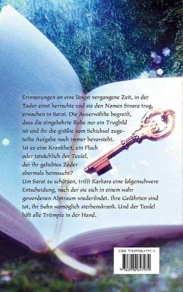 Erinnerungen an eine längst vergangene Zeit, in der Tadur einst herrschte und sie den Namen Sinara trug, erwachen in Sarai. Die Auserwählte begreift, dass die eingekehrte Ruhe nur ein Trugbild ist und ihr die größte vom Schicksal zugeteilte Aufgabe noch immer bevorsteht. Ist es eine Krankheit, ein Fluch oder tatsächlich der Teufel, der ihr geliebtes Zeder abermals heimsucht? Um Sarai zu schützen, trifft Karkara eine folgenschwere Entscheidung, nach der sie sich in einem wahr gewordenen Alptraum wiederfindet. Ihre Gefährten sind tot, ihr Sohn womöglich sterbenskrank. Und der Teufel hält alle Trümpfe in der Hand.