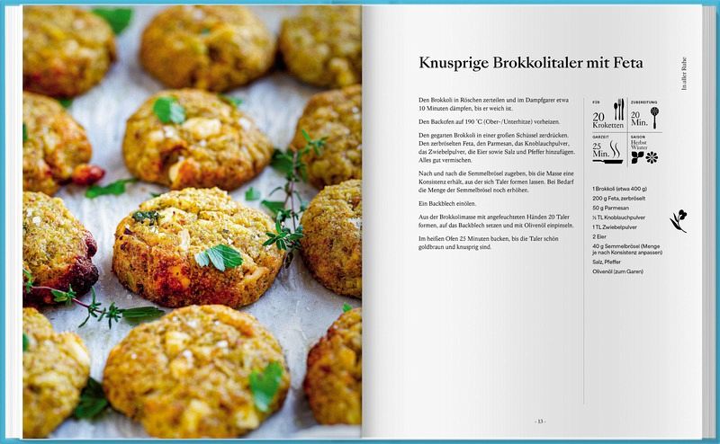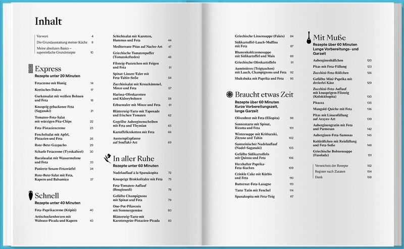 In einem extra Kapitel findest du Infos zu Herkunft und Eigenschaften von Feta, Tipps zur Lagerung und saisonale Empfehlungen für Obst und Gemüse.