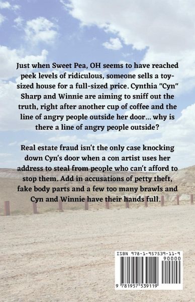 A mob of chickens and an army of characters in black. Just when Sweet Pea, OH seems to have reached peek levels of ridiculous, someone sells a toy-sized house for a full-sized price. Cynthia "Cyn" Sharp and Winnie are aiming to sniff out the truth, right after another cup of coffee. Real estate fraud isn't the only case knocking down Cyn's door when a con artist uses her address to steal from people who can't afford to stop them. Add in accusations of petty theft, fake body parts and a few too many brawls and Cyn and Winnie have their hands full.