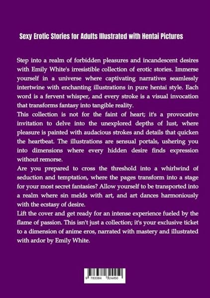 Indulge in an Unforgettable Journey of Passion and Temptation with Emily White's Erotic Masterpiece!Step into a captivating world where seduction knows no bounds in Emily White's latest collection of scintillating erotic stories, enriched with enchanting hentai illustrations. Immerse yourself in a universe where each word is a whispered promise, and every brushstroke is a visual enchantment that brings fantasies to life in pure hentai style.This collection is a daring invitation to explore the uncharted depths of desire, where pleasure unfolds with audacious strokes and details that will quicken your heartbeat. The carefully crafted hentai illustrations serve as sensuous portals, transporting you into dimensions where every hidden fantasy finds unabashed expression.What to Expect:- A Fusion of Literary Mastery and Sensual Artistry- Explicit and Alluring Hentai Illustrations- Stories That Explore the Boundaries of Lust and Fantasy- A Whirlwind of Seduction and TemptationThis isn'tjust a collection; it's your exclusive ticket to a dimension of hentai eros, meticulously narrated and ardently illustrated by Emily White. Lift the cover and prepare for an intense experience fueled by the flame of passion.Caution: This Collection is Not for the Faint of Heart. Are You Ready to Cross the Threshold?