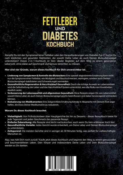 Kämpfst Du mit den Symptomen einer Fettleber oder den Herausforderungen von Diabetes Typ 2? Suchst Du nach köstlichen und gesunden Mahlzeiten, die sowohl Deine Leber als auch Deinen Blutzuckerspiegel unterstützen? Dieses 2-in-1-Kochbuch ist Dein idealer Begleiter auf dem Weg zu einem gesünderen Lebensstil, ohne dabei auf Geschmack und Genuss verzichten zu müssen.Hier sind vier Gründe, warum dieses Kochbuch für Dich unverzichtbar ist:- Linderung von Symptomen & Kontrolle des Blutzuckers: Eine speziell abgestimmte Ernährung kann nicht nur die Symptome einer Fettleber, wie Müdigkeit und Bauchschmerzen, verringern, sondern auch Deinen Blutzuckerspiegel stabilisieren und Schwankungen vermeiden.- Gesundheitliche Regeneration & Herz-Kreislauf-Gesundheit: Durch die richtige Auswahl an Lebensmitteln wird die Selbstheilung der Leber und das Herz-Kreislauf-System unterstützt, was das Risiko von Krankheiten deutlich senkt.- Verbesserung der Lebensqualität und allgemeinen Gesundheit: Diese Rezepte zeigen Dir, wie Lebensmittel sowohl Deine Leber als auch Deinen Blutzuckerspiegel positiv beeinflussen und dabei hervorragend schmecken können.- Reduzierung von Medikamenten: Eine zielgerichtete Ernährung könnte in Absprache mit Deinem Arzt sogar helfen, die Dosis Deiner Medikamente zu reduzieren.Warum Du dieses Kochbuch brauchst:- Vielseitigkeit: Von Frühstücksideen über Hauptgerichte bis hin zu Desserts - dieses Rezeptbuch bietet für jede Tageszeit und jeden Geschmack das passende Rezept.- Einfache Zubereitung: Alle Rezepte sind leicht nachzukochen, auch wenn Du kein erfahrener Koch bist.- Gesundheitliche Vorteile: Jedes Gericht wurde entwickelt, um Deine Leber und Deinen Blutzuckerspiegel zu unterstützen.- Zeitsparend: Die meisten Gerichte sind in weniger als 30 Minuten fertig, was perfekt für vielbeschäftigte Menschen ist.Also, was hält Dich noch zurück? Kaufe jetzt dieses Kochbuch und beginne den Weg zu einem genussvollen und beschwerdefreien Leben. Dein Körper und insbesondere Deine Leber und Dein Blutzuckerspiegel werden es Dir danken.