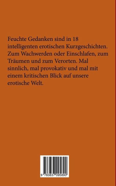 Feuchte Gedanken sind in 18 intelligenten erotischen Kurzgeschichten.Zum Wachwerden oder Einschlafen, zum Träumen und zum Verorten. Mal sinnlich, mal provokativ und mal mit einem kritischen Blick auf unsere erotische Welt.
