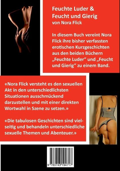 In diesem Buch vereint Nora Flick ihre bisher verfassten erotischen Kurzgeschichten aus den beiden Büchern "Feuchte Luder" und "Feucht und Gierig" zu einem Band.Nora Flick versteht es den sexuellen Akt in den unterschiedlichsten Situationen ausschmückend darzustellen und mit einer direkten Wortwahl in Szene zu setzen.Die tabulosen Geschichten sind vielseitig und behandeln unterschiedliche sexuelle Themen und Abenteuer.