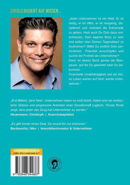 Herr Dipl.-Kfm., Dr. Florian Roski, DBA, MBA, N-NLP ist Start-Up Consultant, Unternehmer und Immobilieninvestor. Er lebt in Nürnberg, Deutschland. Nach seinem Studium, das er erfolgreich als Dipl.-Kfm. absolvierte, startete er seine berufspraktische Laufbahn in einem Start-Up Unternehmen im automotiven Sektor, welches sich schnell zu einem Systemdienstleister mit über 500 Mitarbeitern entwickelte. In dieser Zeit nahm Herr Dr. Roski als kfm. Geschäftsführer verschiedene Führungspositionen wahr und ist bis heute dankbar für die Lektionen, die er von seinen Mentoren lernen durfte. Parallel zum Beruf absolvierte Dr. Roski ein kommunikationswissenschaftliches/ psychologisches Studium, ein MBA-Studienprogramm mit internationaler Ausrichtung (Auslandsaufenthalt in Peking), einen Promotionsstudiengang an der Eliteuniversität (University of Surrey) in UK. Herr Dr. Roski verließ das bisherige Unternehmen nach neun spannenden Jahren, verkaufte seine Firmenanteile und gründete die Firma four-quarters Wirtschaftssozietät GmbH, die heute mit über 650 Gründungsprojekten und 35 Kollegen als Nummer eins in Sachen Gründungsberatung in Deutschland positioniert ist. Neben seinem eigenen Immobilienbestand, besitzt er über 20 Firmenbeteiligungen. Sein eigenes Arbeitsmotto ist: Nur wer vorlebt, kann erzählen. Er unterrichtet des Weiteren als Privatdozent Gründungswesen an der technischen Hochschule in Nürnberg. Wie für ungeduldige Unternehmer üblich, hat Herr Dr. Roski sehr früh damit begonnen, das Thema Finanzielle Freiheit und Unabhängigkeit in die eigenen Hände zu nehmen. Heute findet man ihn auf seinen YouTube Kanälen unter: * Immobilien Millionär Dr. Florian Roski oder * FeuerDeinenBoss Dr. Florian Roski versteht es, Unternehmertum und Investment elegant zu verbinden und zählt zu den erfolgreichsten Fachberatern. Sein Anliegen ist es, mit seinen Büchern das Thema "Mit Immobilien Vermögen aufbauen" und "Unternehmertum" einfach und praxisnah zu vermitteln. Heute bietet er unter anderem seinen Kunden unter: www.immobilien-millionär.de oder www.feuerdeinenboss.de Kurse und Unterstützung an. Unter: www.immobilien-mentoring.de bekommst Du die Möglichkeit bei Dr. Florian Roski ein 1:1 Immobilien Mentoring zu buchen.¿