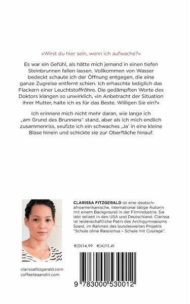 CLARISSA FITZGERALD ist eine deutsch-afroamerikanische, international tätige Autorin. Nach Abschluss ihres Studiums in Deutschland, den USA, und Neuseeland mit den Schwerpunkten Film, Fernsehen, Musik und Theater arbeitete sie in der Filmindustrie. Innerhalb der letzten zehn Jahre hatte sie zudem Anstellungen als Texterin, Consultant, Übersetzerin, Radioredakteurin und Dialektcoach. Sie lebt teilzeit in den USA und Deutschland. Clarissa ist leidenschaftliche Patin des Archigymnasiums Soest, im Rahmen des bundesweiten Projekts ¿Schule ohne Rassismus ¿ Schule mit Courage¿, einer ¿nachhaltigen europäischen Idee, die deutschlandweit Kinder und Jugendliche vernetzt, qualifiziert und motiviert, sich aktiv gegen jede Form der Diskriminierung zu stellen¿.