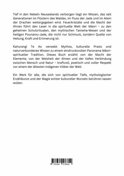 Tief in den Nebeln Neuseelands verborgen liegt ein Wissen, das seit Generationen im Flüstern des Waldes, im Fluss der Jade und im Atem der Drachen weitergegeben wird. Feuerkristalle und die Macht der Ahnen führt den Leser in die spirituelle Welt der Maori - zu den geheimen Schutzritualen, den mythischen Taniwha-Wesen und der heiligen Pounamu-Jade, die nicht nur Schmuck, sondern Quelle von Heilung, Kraft und Erinnerung ist.Kahurangi Te Ao verwebt Mythos, kulturelle Praxis und naturverbundenes Wissen zu einem eindrucksvollen Panorama Maori-spiritueller Tradition. Dieses Buch erzählt von der Macht der Elemente, von der Weisheit der Ahnen und der tiefen Verbindung zwischen Mensch und Natur - kraftvoll, poetisch und voller Respekt vor einem der ältesten indig-nen Völker der Welt.Ein Werk für alle, die sich von spiritueller Tiefe, mythologischer Erzählkunst und der Ma-gie echter kultureller Wurzeln berühren lassen wollen.