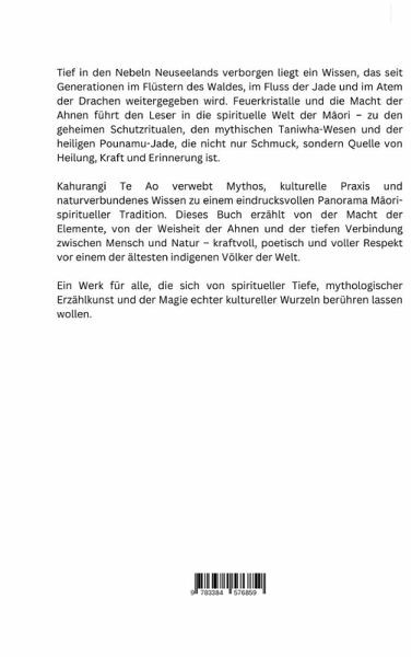 Tief in den Nebeln Neuseelands verborgen liegt ein Wissen, das seit Generationen im Flüstern des Waldes, im Fluss der Jade und im Atem der Drachen weitergegeben wird. Feuerkristalle und die Macht der Ahnen führt den Leser in die spirituelle Welt der Maori - zu den geheimen Schutzritualen, den mythischen Taniwha-Wesen und der heiligen Pounamu-Jade, die nicht nur Schmuck, sondern Quelle von Heilung, Kraft und Erinnerung ist.Kahurangi Te Ao verwebt Mythos, kulturelle Praxis und naturverbundenes Wissen zu einem eindrucksvollen Panorama Maori-spiritueller Tradition. Dieses Buch erzählt von der Macht der Elemente, von der Weisheit der Ahnen und der tiefen Verbindung zwischen Mensch und Natur - kraftvoll, poetisch und voller Respekt vor einem der ältesten indig-nen Völker der Welt.Ein Werk für alle, die sich von spiritueller Tiefe, mythologischer Erzählkunst und der Ma-gie echter kultureller Wurzeln berühren lassen wollen.