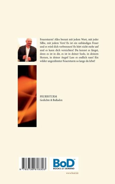 Feuersturm! Alles brennt mit jedem Wort, mit jeder Silbe, mit jedem Vers! Es ist ein unbändiges Feuer und es wird dich verbrennen! Es hört nicht mehr auf und es kann dich töten! Du kennst es längst, denn es ist in dir, es ist in deiner Seele, in deinem Herzen, in deiner Angst! Lass es endlich raus! Ein wilder ungezähmter Feuersturm so lange du lebst!