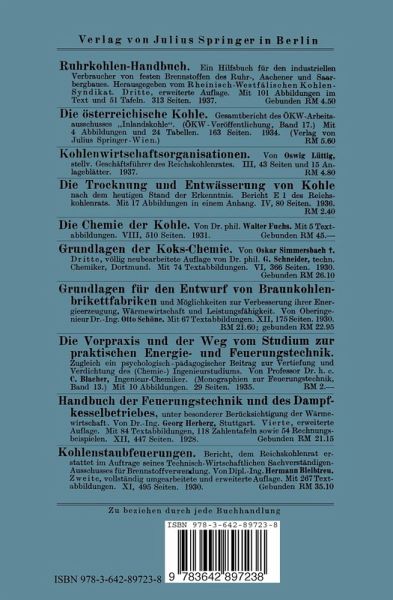 1. Die Steinkohlen Oberschlesiens, physikalisch und chemisch betrachtet.- 2. Die Steinkohlen Oberschlesiens und ihr Verhalten während der Verbrennung.- 3. Luftmengen und Gasmengen bei der vollkommenen Verbrennung der Steinkohlen Oberschlesiens sowie deren Gas-Wärmeninhalt.- 4. Unvollkommene Verbrennung der Steinkohlen Oberschlesiens.- 5. Die mineralischen Rückstände der Steinkohlen Oberschlesiens, ihr Verhalten im Feuer und die Erweichungs- oder Schmelzpunkte derselben.- 6. Feuerfeste Steine und Schlackenangriffe aus Rückständen von Steinkohlen Oberschlesiens.- 7. Rostverschleiß und seine Ursachen bei Benutzung von Steinkohlen Oberschlesiens.- 8. Der Betrieb von Feuerungen mit Handbeschickung bei Benutzung von Steinkohlen Oberschlesiens.- 9. Der Betrieb von Feuerungen mit mechanischer Beschickung bei Benutzung von Steinkohlen Oberschlesiens.- 10. Der Betrieb rostloser Feuerungen bei Verwendung von Steinkohlen Oberschlesiens.- 11. Der Betrieb von Gasgeneratoren bei Benutzung von Steinkohlen Oberschlesiens.- 12. Lagerung von Steinkohlen Oberschlesiens.- Tabellen-Anhang.
