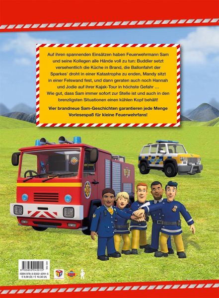 Auf ihren spannenden Einsätzen haben Feuerwehrmann Sam und seine Kollegen alle Hände voll zu tun: Buddler setzt versehentlich die Küche in Brand, die Ballonfahrt der Sparkes' droht in einer Katastrophe zu enden, Mandy sitzt in einer Felswand fest, und dann geraten auch noch Hannah und Jodie auf ihrer Kajak-Tour in höchste Gefahr ... Wie gut, dass Sam immer sofort zur Stelle ist und auch in den brenzligsten Situationen einen kühlen Kopf behält!Vier brandneue Sam-Geschichten garantieren jede Menge Vorlesespaß für kleine Feuerwehrfans!