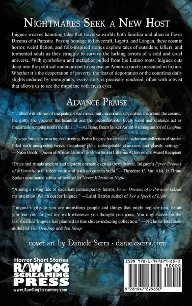 "In Fever Dreams of a Parasite Iniguez weaves haunting tales that traverse worlds both familiar and alien. Paying homage to Lovecraft, Ligotti, and Langan, these cosmic horror, weird fiction, and folk-inspired stories explore tales of outsiders, killers, and tormented souls as they struggle to survive the lurking terrors of a cold and cruel universe. With symbolism and metaphor pulled from his Latino roots, Iniguez cuts deep into the political undercurrent to expose an America rarely presented in fiction. Whether it's the desperation of poverty, the fear of deportation or the countless daily slights endured by immigrants, these tales are about people who are usually overlooked. This fresh perspective is often delivered with a twist that allows us to see the mundane with fresh eyes"-- Back cover.