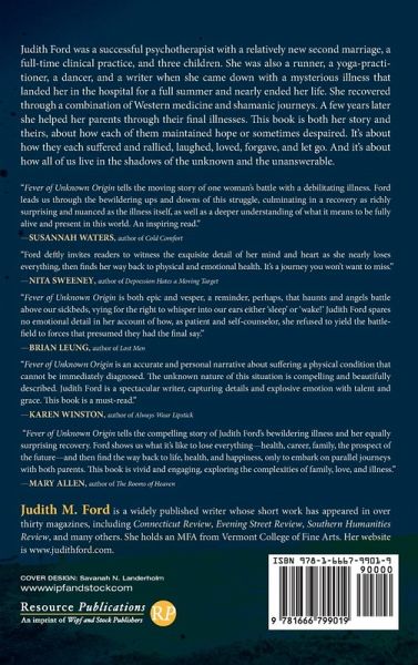 Judith Ford was a successful psychotherapist with a relatively new second marriage, a full-time clinical practice, and three children. She was also a runner, a yoga-practitioner, a dancer, and a writer when she came down with a mysterious illness that landed her in the hospital for a full summer and nearly ended her life. She recovered through a combination of Western medicine and shamanic journeys. A few years later she helped her parents through their final illnesses. This book is both her story and theirs, about how each of them maintained hope or sometimes despaired. It's about how they each suffered and rallied, laughed, loved, forgave, and let go. And it's about how all of us live in the shadows of the unknown and the unanswerable.