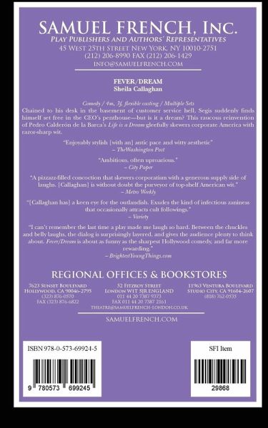Comedy Characters: 3 male, 3 female, flexible castingChained to his desk in the basement of customer service hell, Segis suddenly finds himself set free in the CEO's penthouse-but is it a dream? This raucous reinvention of Pedro Calder¿n de la Barca's Life is a Dream gleefully skewers corporate America with razor-sharp wit "Enjoyably stylish [with an] antic pace and witty aesthetic" - Washington Post"Ambitious, often uproarious." - City Paper "A pi