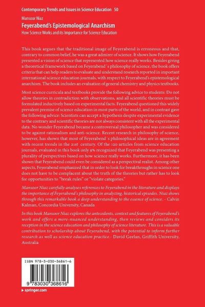 Mansoor Niaz carefully analyses references to Feyerabend in the literature and displays the importance of Feyerabend's philosophy in analyzing, historical episodes. Niaz shows through this remarkable book a deep understanding to the essence of science. - Calvin Kalman, Concordia University, Canada