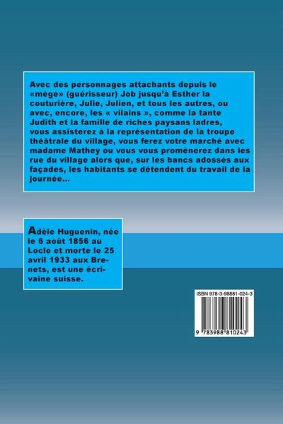 Avec des personnages attachants depuis le mège (guérisseur) Job jusqu'à Esther la couturière, Julie, Julien, et tous les autres, ou avec, encore, les vilains , comme la tante Judith et la famille de riches paysans ladres, vous assisterez à la représentation de la troupe théâtrale du village, vous ferez votre marché avec madame Mathey ou vous vous promènerez dans les rue du village alors que, sur les bancs adossés aux façades, les habitants se détendent du travail de la journée...