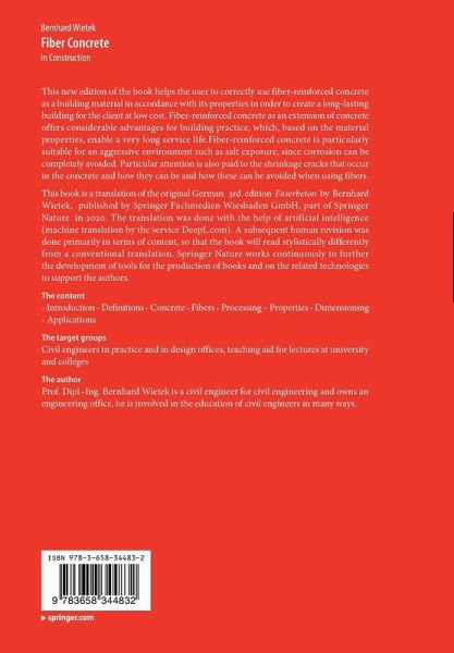 This book is a translation of the original German 3rd edition Faserbeton by Bernhard Wietek, published by Springer Fachmedien Wiesbaden GmbH, part of Springer Nature in 2020. The translation was done with the help of artificial intelligence (machine translation by the service DeepL.com). A subsequent human revision was done primarily in terms of content, so that the book will read stylistically differently from a conventional translation. Springer Nature works continuously to further the development of tools for the production of books and on the related technologies to support the authors.