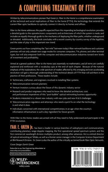 Written by telecommunications pioneer Paul Green Jr., Fiber to the Home is a comprehensive examination of the technical and social implications of fiber to the home (FTTH), the technology that extends the current fiber optic backbone to optically connect it directly to homes and offices.