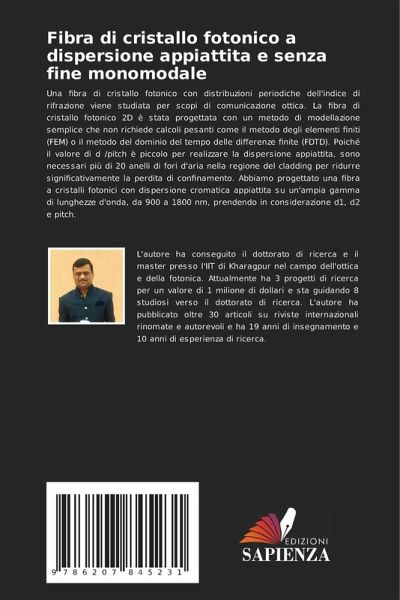 Una fibra di cristallo fotonico con distribuzioni periodiche dell'indice di rifrazione viene studiata per scopi di comunicazione ottica. La fibra di cristallo fotonico 2D è stata progettata con un metodo di modellazione semplice che non richiede calcoli pesanti come il metodo degli elementi finiti (FEM) o il metodo del dominio del tempo delle differenze finite (FDTD). Poiché il valore di d /pitch è piccolo per realizzare la dispersione appiattita, sono necessari più di 20 anelli di fori d'aria nella regione del cladding per ridurre significativamente la perdita di confinamento. Abbiamo progettato una fibra a cristalli fotonici con dispersione cromatica appiattita su un'ampia gamma di lunghezze d'onda, da 900 a 1800 nm, prendendo in considerazione d1, d2 e pitch.